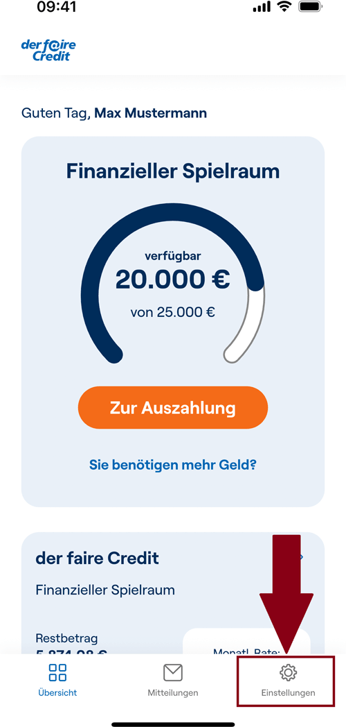 Die faire Credit App können Sie sich einfach über Ihren App Store herunterladen. Die Zugangsdaten für die Anmeldung erhalten Sie direkt nach Abschluss Ihres fairen Credit per SMS, E-Mail oder Post.