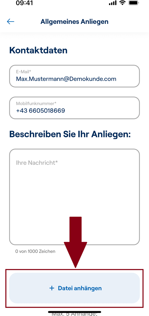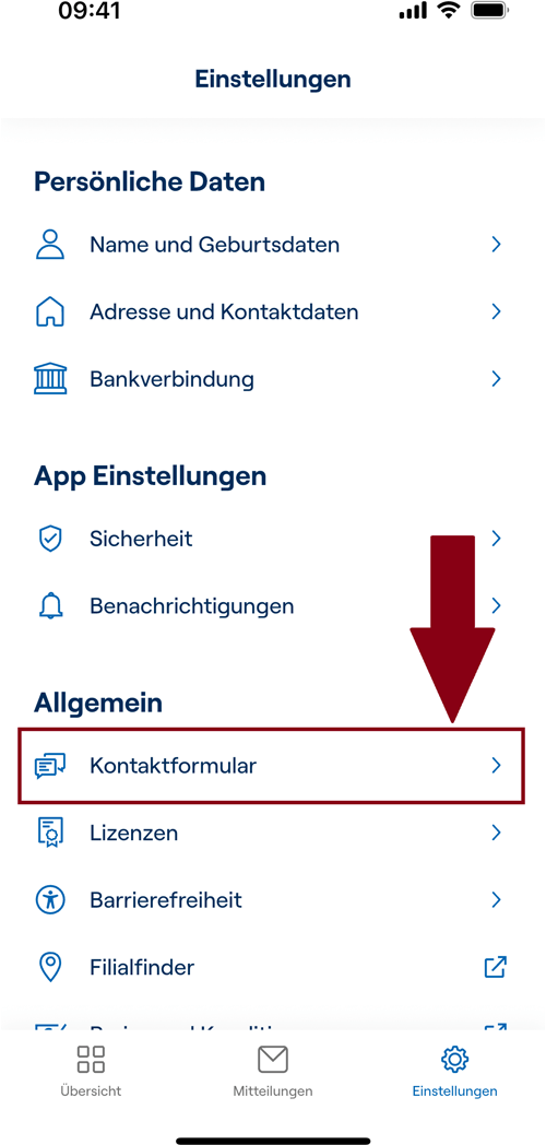 Die ausgefüllte und unterschriebene Vollmacht übermitteln Sie uns am besten direkt per App bzw. Kundenportal. Dort lassen Sie uns das Dokument einfach per Kontaktformular zukommen: