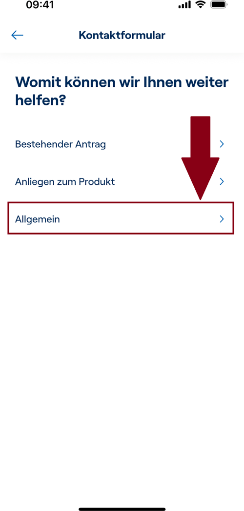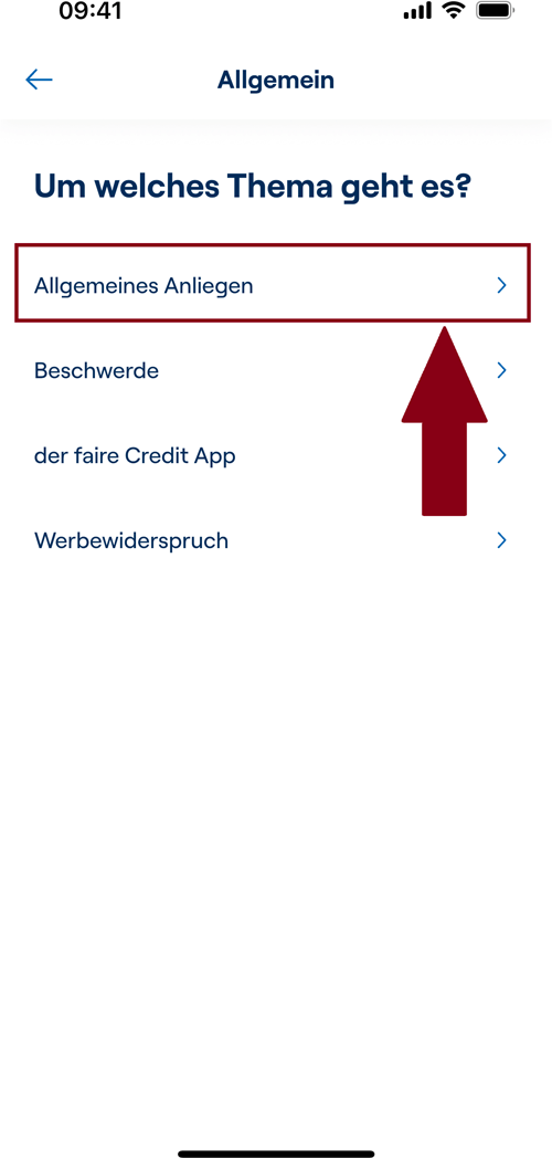 - Wählen Sie dann „Allgemein“ und „Allgemeines Anliegen“.