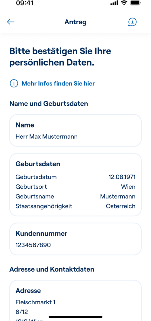 3. Bestätigen oder korrigieren Sie Ihre persönlichen Daten.