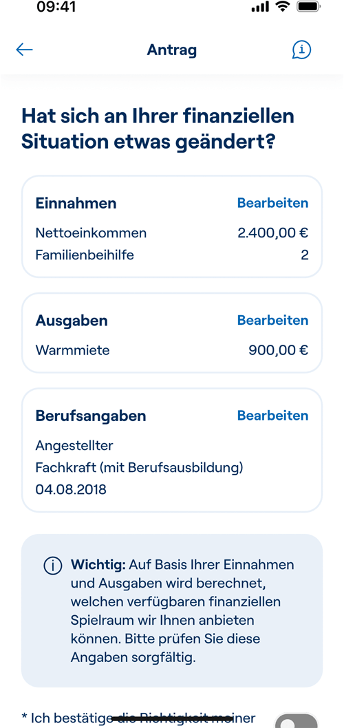 4. Bestätigen oder korrigieren Sie die Angaben zu Ihrer finanziellen Situation.