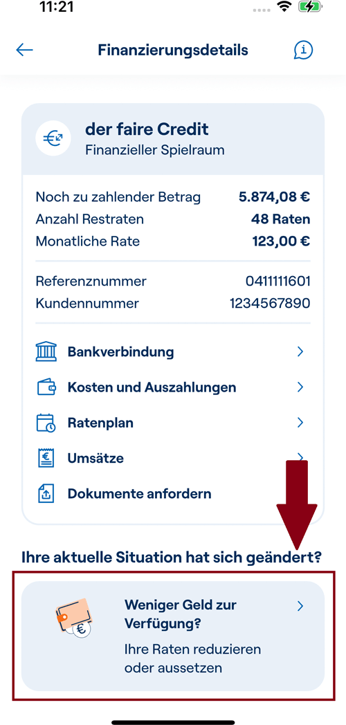 Bevor Sie eine Ratenpause in der App endgültig bestätigen, zeigen wir Ihnen genau, wie sich das auf Ihren Kredit auswirkt. Sie sehen transparent: