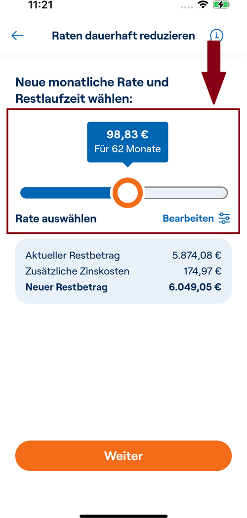 5. Dauer (und bei Reduzierung den gewünschten Ratenbetrag) wählen